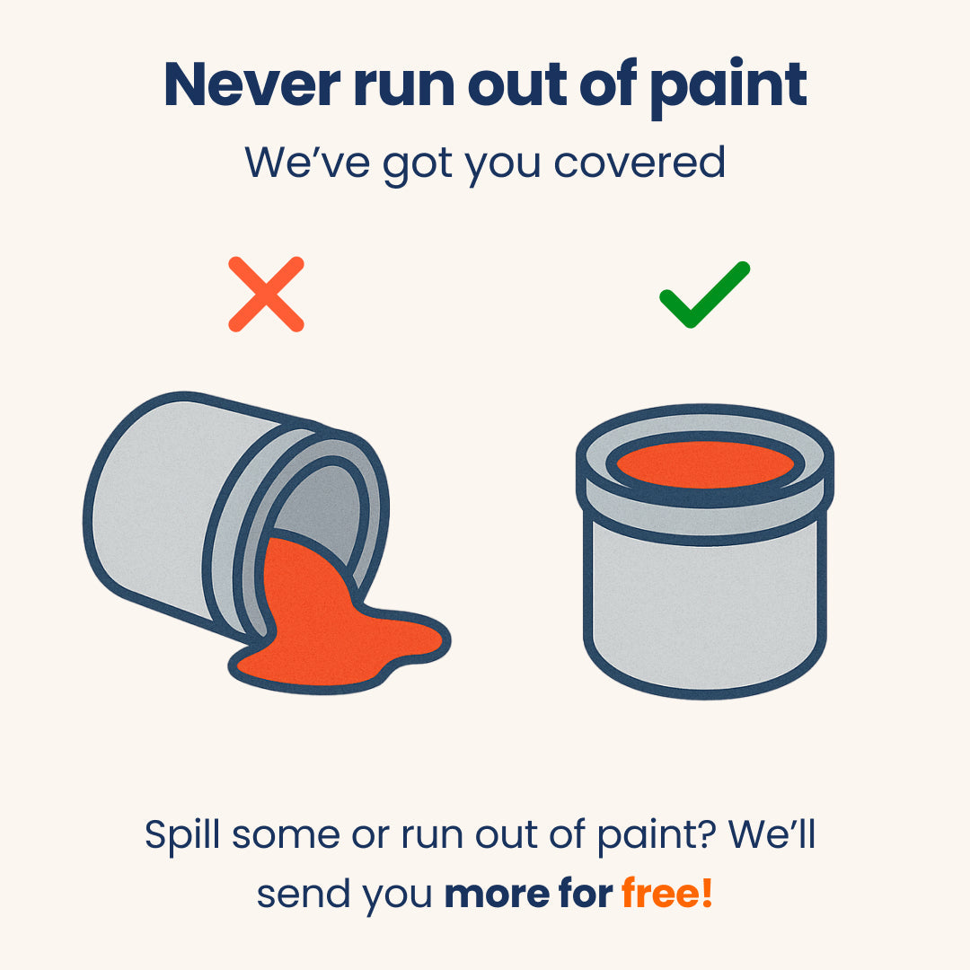 Chaque kit contient suffisamment de peinture qu'il n'en faut pour réaliser votre chef-d'œuvre. Toutefois, si vous n'en avez plus, contactez notre équipe d'assistance et nous vous enverrons de la peinture supplémentaire gratuitement !